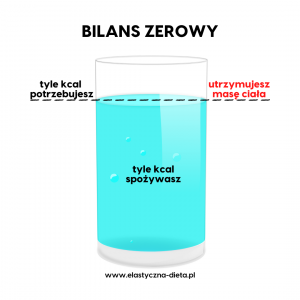 W przypadku bilansu zerowego ilość energii spożywanej jest równa wydatkowanej więc utrzymujemy stabilną masę ciała.